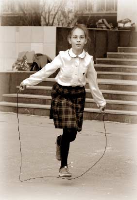 Можно провести и еще один вариант. Каждый игрок из команды забегает под крутящуюся скакалку, делает оговоренное количество прыжков условленным заранее способом и уступает очередь следующему. Тот повторяет задание, уступая очередь третьему, и т.д. Побеждает команда, сделавшая меньше ошибок.